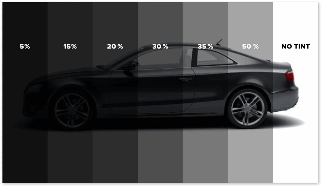 See how each tint percentage affects your car’s appearance and comfort. From light shading to maximum privacy, find the ideal balance between style, UV protection, and driving safety.